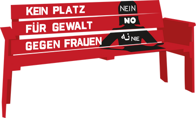 Rote Bank mit der Aufschrift "Kein Platz für Gewalt gegen Frauen"